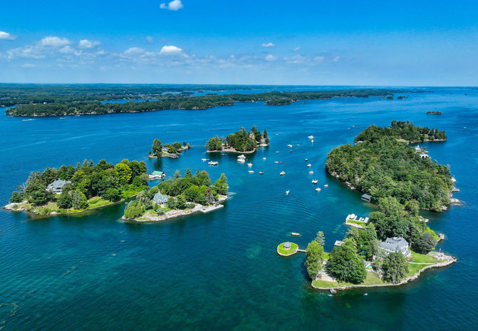 搭乘遊船暢遊有《上帝遺落在加拿大東岸的珍珠》之稱的千島群島(1000 Islands),欣賞沿岸的湖光山色與秀麗楓景,旖旎風光像是進入了世外桃源,讓人不捨離去。位於加拿大東南部安大略湖水注入聖羅倫斯河處,因有約1800多座星羅棋布的小島,分屬加拿大以及美國,總稱為千島群島,這裡的島嶼各有特色,尤以莎維崗島最為著名,因島上有一座全長僅48尺橫跨美加兩國邊境的橋樑,被稱為「世界上最短的的國界(加拿大vs美國紐約州)」。