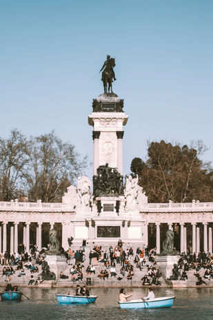 位在馬德里市區東側,占地117公頃,原本是菲利浦二世國王的皇室公園,1868年之後開始對一般民眾開放,園內有法式庭園風格的設計,也有原始森林的風貌,1887年的萬國博覽會在公園內興建了一棟玻璃宮,成為了公園內著名的地標,前方的水池甚至有許多人在上面划船賞景,好不愜意。如今公園是當地人休閒野餐,散步聊天的最佳去處,相當熱鬧。