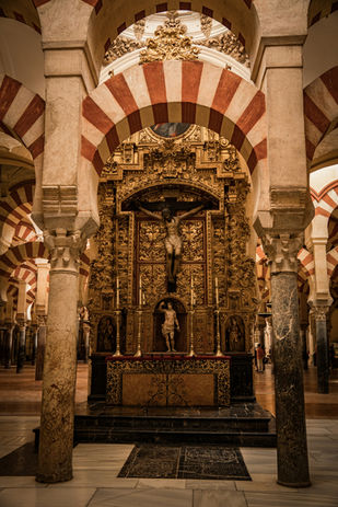 哥多華大清真寺建立於786年,經過歷任統治者的擴建,成為了一座佔地24,000平方公尺,可容納25,000人的超大型清真寺,外部19扇門面顯現其壯闊氣勢,最負盛名的850根瑪瑙碧玉般的大理石圓柱裝飾以及紅白色的雙層拱門支撐著屋頂,形成柱林的奇特設計。天主教收復哥多華後,此座清真寺改建成為一座天主教教堂,但因並未拆除大部分原有的清真寺建築體,並增添了文藝復興的修飾,最終形成了一座獨一無二的,融合伊斯蘭風格和歐洲文藝復興風格的建築物,並在1984年列冊聯合國世界文化遺產。